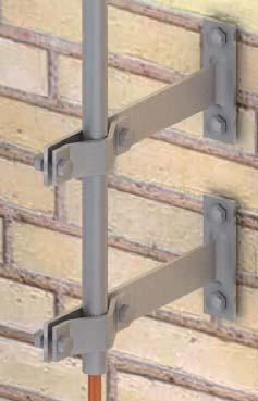 Sistem de distantare pentru catarge de 1” - 1 1/2” de fixat pe perete. Sistemele de fixare in forma de U sunt concepute pentru a evita obstacole cum sunt cornisele. Pentru o fixare corecta, sistemele de distantare trebuie montate la o distanta intre ele de cel putin 60 cm si de cel putin 30 cm in partea superioara a constructiei